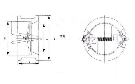 Cierre rápido y automático: dos resortes de torsión independientes actúan sobre cada uno de los dos discos con bisagras, asegurando el cierre rápido y automático La velocidad de flujo instantáneo cae a cero, evitando efectivamente la inversión del flujo.